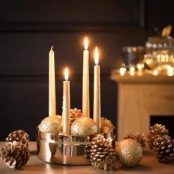 Maisons Du Monde Décorations Lumineuses De Noël 4 Bougies Longues Dorées – Lot De 2