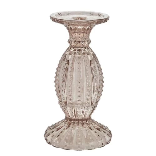 L10.5xLa10.5xH19 cm – verre – Rose – Marque : Lene Bjerre. Coup de cœur pour ce bougeoir texturé, finement travaillé et à l’allure romantique. Ce bougeoir fera à coup sur son effet sur votre tableà dîner ou en décoration de salon ou chambre.