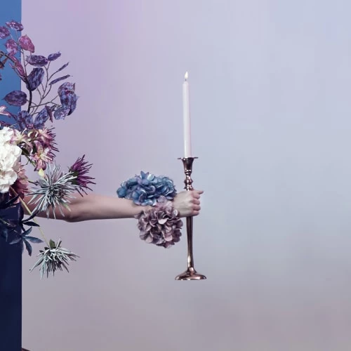 Bougeoir cuivré en aluminium en forme de baguette.sa forme apporte une touche élégante et chic sur votre table ou comme élément décoratif sur une étagère.